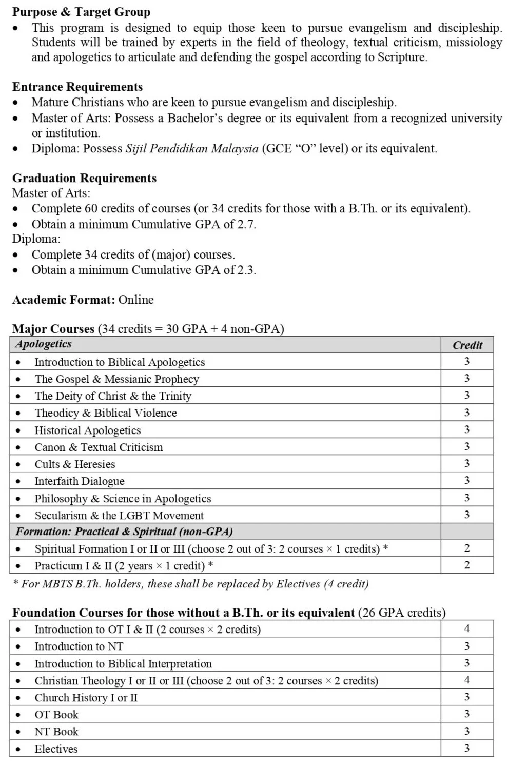 Master of Arts IN GREAT COMMISSION APOLOGETICS